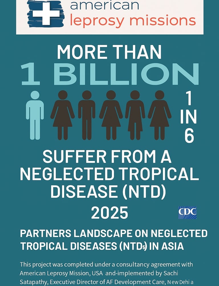 The Asia Partner Landscape Project on NTDs, handled for American Leprosy Mission (ALM), USA, involved India, Nepal, Sri Lanka, Myanmar, Philippines, leading a multi-country evaluation to enhance MEAL systems for a faith-based global charity focused on neglected tropical diseases.