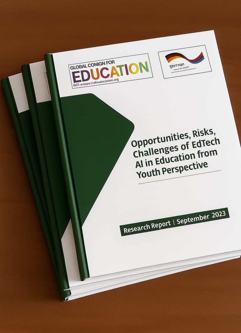 The Artificial Intelligence (AI), Youth, and Education Evaluation, led for Global Campaign for Education (GCE), South Africa, and GIZ, Germany, focused on Africa with involvement in 33 countries in the global south, leading a multi-country evaluation collaborating with 40 GCE Alliance partners to assess the role of artificial intelligence in education.