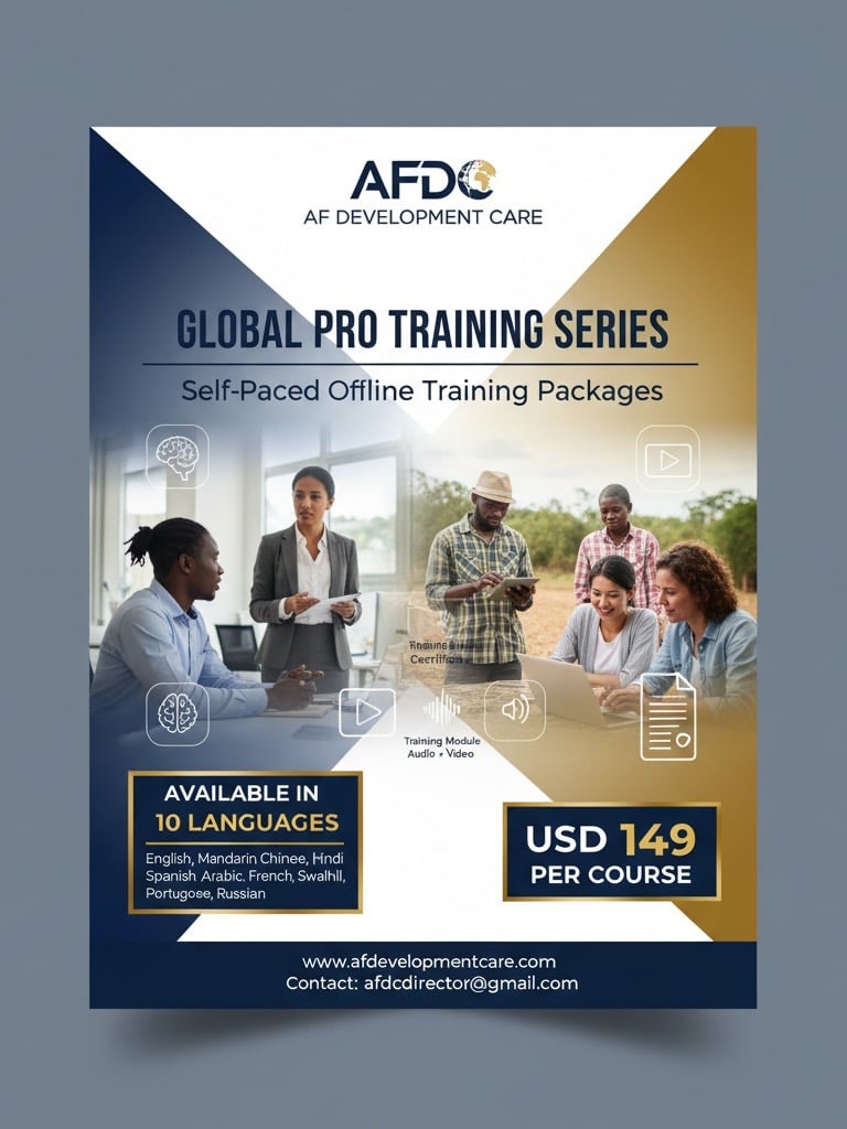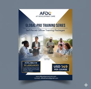 AFDC Self-Paced (Offline) Training Packages for Global Impact Professionals (Available in English, Mandarin Chinese, Hindi, Spanish, Arabic, French, Swahili, Portuguese, and Russian)/ Only USD 149