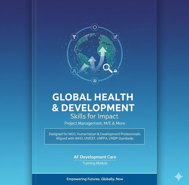 This 3-hour, customizable training is designed for NGO, humanitarian, development, and relief professionals. Choose one high-demand topic from critical global health and development areas to gain practical skills and tools for project management and monitoring & evaluation (M&E). Tailored to meet the needs of international global development agencies like WHO, UNICEF, UNFPA, and UNDP, this training prepares you for competitive roles in global health and development.